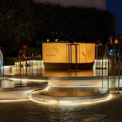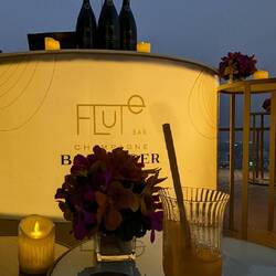 Dass der Cocktail ca. 35,-€ kostet, akzeptiere ich, ist es doch nur ein verstecktes, aber eleganteres Eintrittsgeld, ohne das es hier oben genauso laut und voll wäre, wie 200 m unter uns.