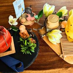Aber nun passieren wir das Tor zu Chinatown, laufen an hunderten kleiner, einfacher, aber jeweils sehr spezialisierter Läden - hier gibt es alles! - vorbei. Nahe am Fluss verspüren wir Durst und Lust auf eine Ruhepause. Zufällig verschlägt es uns ins "Mandarin Tea House", wir bestellen zwei in der Karte verlockend ausschauende Erfrischungsgetränke und was bekommen wir? So kunstvoll ausstaffierte und wirklich leckere Arrangements, dass wir uns wie im Luxushotel fühlen! Absolut bezaubernd und mit ca. 4,50 € einfach nur ein Schnäppchen.