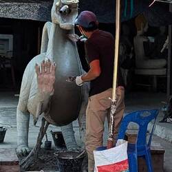 Ich habe Gelegenheit, einem Handwerker bei der Arbeit zuzusehen und bekomme eine Antwort auf meine schon lange im Raum stehende Frage: wie werden die Skulpturen eigentlich hergestellt? Tatsächlich von Hand mit einem Stahlskelett und so einer Art Spachtelmasse! Mit fligranen Werkzeugen, einfach unvorstellbar!Leer más
