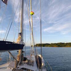 Vor Anker liegen , Teil der Mitsegler ist von Board gegangen.🏝️