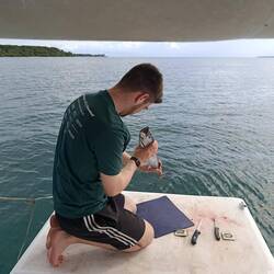 Vor dem Strand und in mitten eines Riff liegend mit dem Schiff🏝️