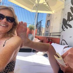 Nach einer schlechten Nacht (heiß, windstill und von Mücken zerfressen) und einem Bad im Meer, fassten wir den Entschluss, vorzeitig nach Athen ins klimatisierte Hotel zu flüchten. Ca. eine Stunde im Stau der Zubringerautobahn verbracht, bei 40 Grad! Abends im Viertel um das Hotel spaziert - soll das Kultviertel sein, in Deutschland würde man es vermutlich meiden. Und überall heiß, bis auf die tief klimatisierten Räume. Hoffentlich geht das ohne Erkältung ab.Read more