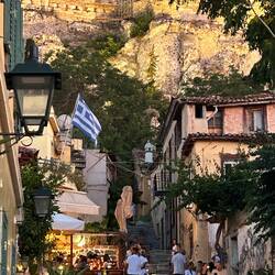 Gegen Abend haben wir uns in das Viertel unterhalb der Akropolis bewegt. Tagsüber viel zu heiß. Gegen Mitternacht war Alina dann da und wir sind noch zum Essen in unser Viertel