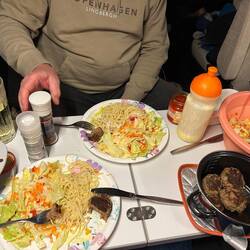 Da wir heute morgen spät losgefahren sind und uns noch Dijon angesehen haben, gab es spät Abendessen im Womo.