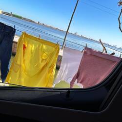 Dafür das wir direkt an der Hafenkante übernachtet hatten, war es recht ruhig. Zum Abschluss dann noch eine Stadtbesichtigung und ein Strandbesuch, um mit Nala zu üben - heute endlich mit Erfolg