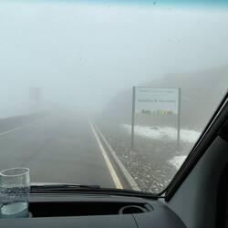 Der Panoramafahrt übers Timmelsjoch setzten dichte Wolken sehr enge Grenzen. Selbst im Tunnel war die Sicht nebelig.