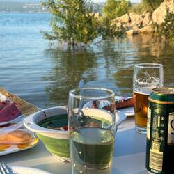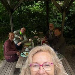 Alina hat Geburtstag. Kaffee auf Balkonien und Abendessen bei Maximilians Brauwiesen.