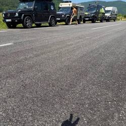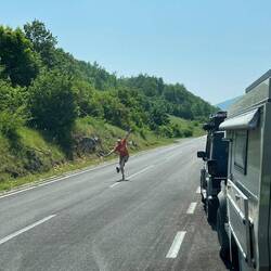 Heute Morgen musste erstmal Martins Auto repariert werden. Fett trat aus der Radnarbe aus - der Antriebsstrang hätte kollabieren können. In den Bergen ist Albanien doch wieder schöner 😂