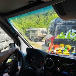 Auf Fotos gar nicht darstellbar, aber tatsächlich irrsinnig enger, steiniger und steiler Weg den Berg hinauf. Das war die Grenze für unsere Fahrzeuge, wobei die höheren noch mehr Probleme dich dieRead more