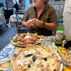 Die Amalfiküste ist traumhaft schön. Wir sind sie komplett gefahren und entsprechend erschöpft am Campingplatz angekommen. Abendessen an der Straße in einer herunter gekommenen Gegend, aber ,Read more