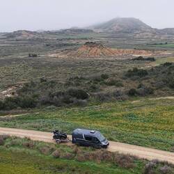 Wir fahren mit wohnmobil und hanger durc