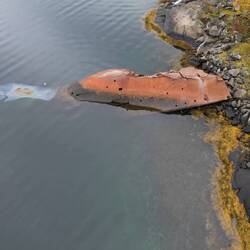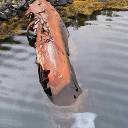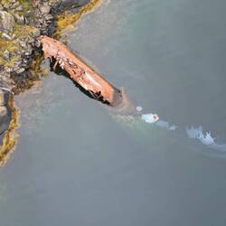 Hier liegt ein altes gesunkenes Kriegsschiff aus dem Jahr 1940.