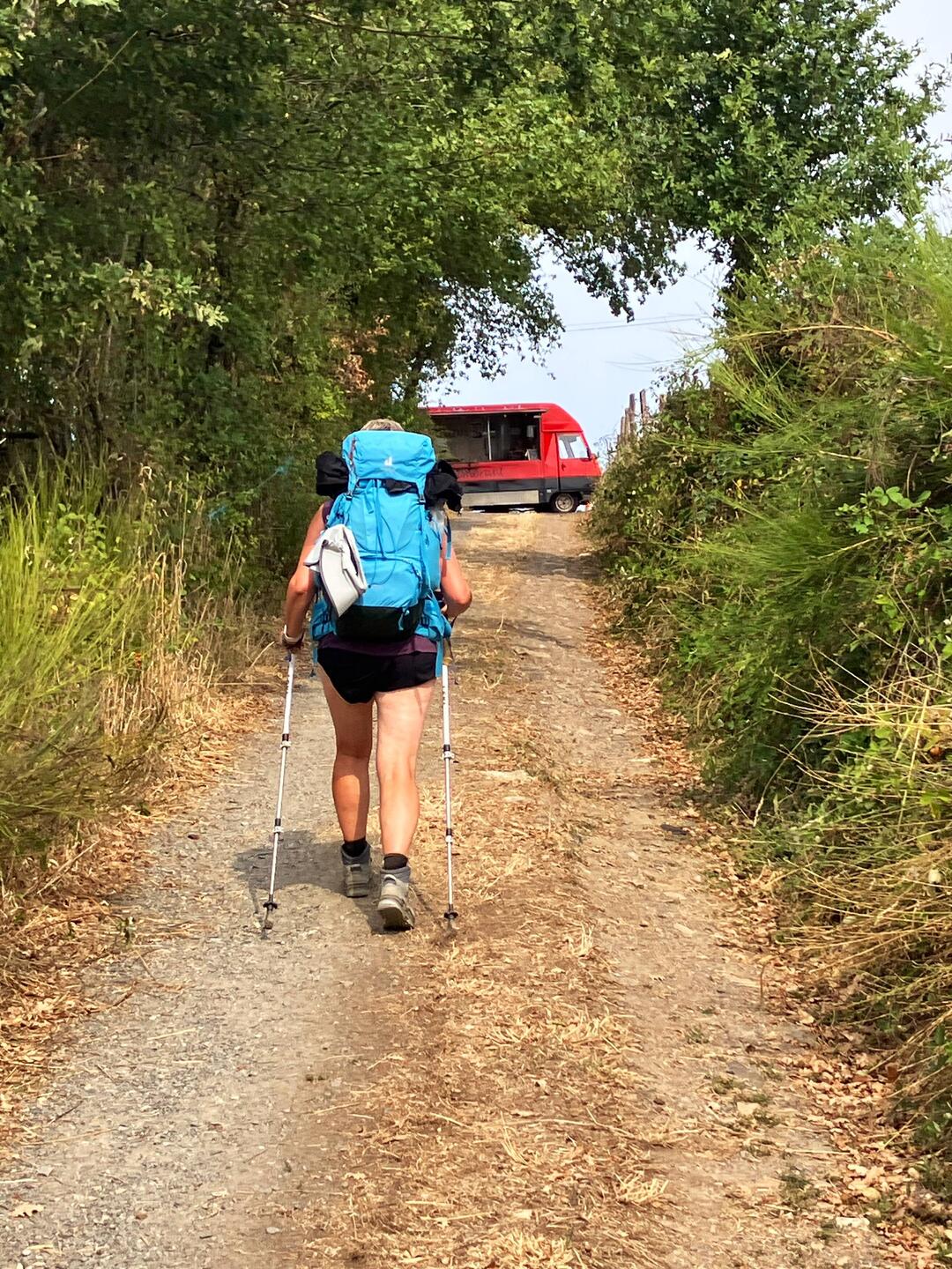 Mitten im Weg, die Retterin des Tages. Der Weg gibt nicht, was der Pilger will, sondern braucht. Eben: Was kühles zu trinken und eine Pause. Was sowas manchmal Kräfte freisetzt 😅.