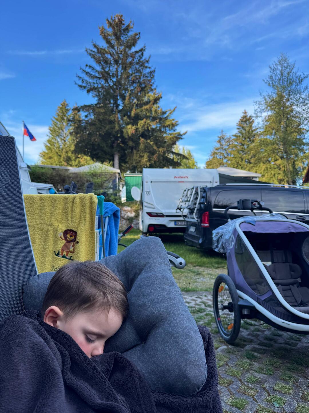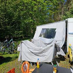 Ohne Stau und easy entspannt sind wir auf dem CP gelandet. Erster Eindruck nach dem Aufbau von Markise und Seitenteilen + Front > ca. 30 Minuten weniger Zeitansatz und alleine machbar.