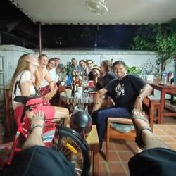 Arriving to Luang Prabang was at the beginning a bit disappointing because I was back to tourism, english, and lots of people. Just arrived to my hostel felt a bad vibe and for some reason, even though I could see how the city was beautiful, got a bad inicial feeling. Nevertheless I was meeting the dutch guy I met before, and also started to meet more and more nice people. Mingled around the city for the first two days, and the second night I ended up bowling with some people and had soso much fun (even did a bit of dangerous drunk archery) and the day after, gathered a lot of people together, and went to visit and swim a beautiful waterfall (even with a bear rescue center inside)! After that, I had a laolao (the local alcohol) bottle left from the previous night that we didn't finish, and gathered all the people I had in my new circle and promised them a nice cocktail. We ate in the night market some good korean food (and also a bit weird), made everyone gather all the ingredients I needed, and went back to the hostel with almost 15 people that I didn't even know. It was such a fun night, we played a game about questions, at some point a belgium guy said he wanted to make a question for everyone, which was "what was the biggest heartbreak we've had in our lives". This turned into one of the most sincere and beautiful group conversations I've had. where we all shared, listened, understood and became a small family in just a moment, even though we were complete strangers. It was such a special moment, that reminded me a little bit of home and "les rodes de sentiment del cau", and made me feel a really good feeling of nostalgia. In conclusion, all my bad feelings and prejudices of the place turned out to be pointing towards the opposite direction as it should. Next morning woke up at 5 in the morning to go see the morning alms, the monks walking on their orange attires gathering sticky rice from all the offerings of local people on the street (no one else dared to join me, which was even nice cause I was the only tourist following them). And after that, had breakfast with Loek, the dutch guy (because we made a bet so he just woke up at 7 so I would lose), and got on a bus towards nature and quiet, with my heart a bit more full after the beautiful bonds I had just made in a few hours.