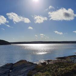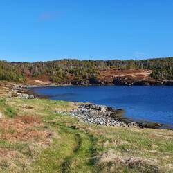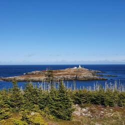 Vue sur l'océan Atlantique et sur Green Island avec son phare, un des rares doté de personnel dans la province.