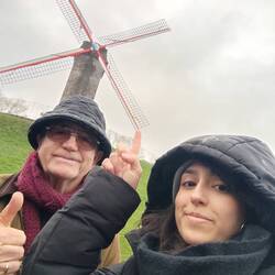 Decidimos entonces ir a probar comida típica local: el McDonald's 😂, y de postre unos dulces de merengue con chocolate belga. Hambre no pasamos 😄. Empezamos entonces nuestra ruta turística por Brujas: los canales, el campanario Belfort, el ayuntamiento, una rutita de 4 molinos ⚙️ por el parque de Kruivest, y muchas callejuelas 👀, hasta llegar al muelle del Rosario 🛶.Read more