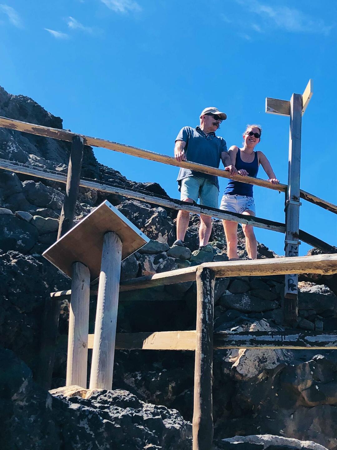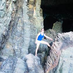 Die Piratenhöhlen in Ajuy sind sehr eindrucksvoll und Theresa hat viel Spaß beim Klettern und Erkunden…