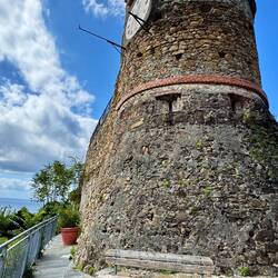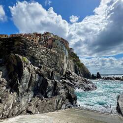 Manarola, mit seinen hübschen farbigen Hauser, liegt auf einem Felssockel an einer Meeresklippe. Wie auch in Riomaggiore, bildet ein überbauter Wildbach, der sich zwischen den Häusern schlängelt,Read more