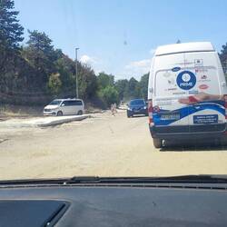 Richtig enge Straße mit tiefen Gräben auf der einen Seite, so dass man immer Gefahr läuft, in den Graben gegen ein Haus zu fahren. Hab ich so noch nicht erlebt