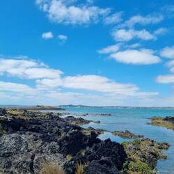 Today I took the ferry across to Rangitoto Island. The island was formed of volcanic rock that had erupted from the crater in the centre of the island. It is uninhabited by humans and has very fewEn savoir plus