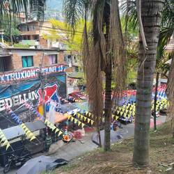 Comuna 13 is one of the 16 'comunas' (or comunes) within Medellin. Its a very popular spot to visit due to its vibrant street art but also its marred history, as it was a neighbourhood of guerilla warfare all the way up to 2002. In 2002 the Colombian military massacred all of the guerrillas and many civilians in an operation to take back control of the comuna, which they managed to do successfully after over 20 failed operations in the past.