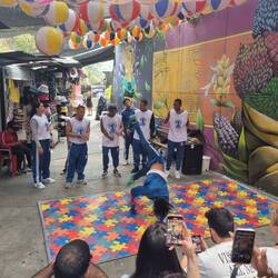 Our first impressions were that it was superbly hilly but also lived up to its colourful name! We were also treated to a break-dancing performance and a rap from the locals.もっと詳しく