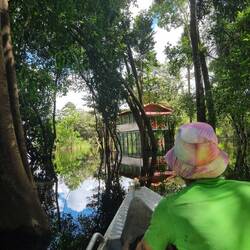 At the other side of our jungle walk we were greeted by a boat to take us to our accomodation. Our accomodation was in the floating house on 'piranha lake'. To get here we had to navigate some veryЧитать далее