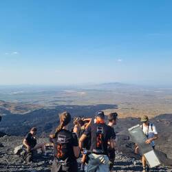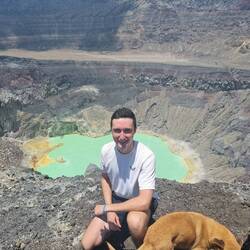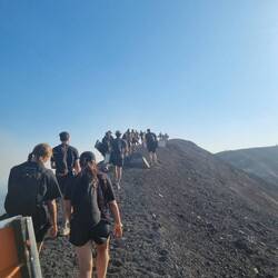 At the rim of the crater you can look down into the steaming emerald lake. The sulphur choked us at times but this didn't stop us enjoying a well earned pizza slice as we admired the view.