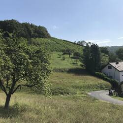 Da es heute relativ warm ist, entspannen wir gemütlich am Waldrand. In der Ferne ist Gramschatz zu sehen.