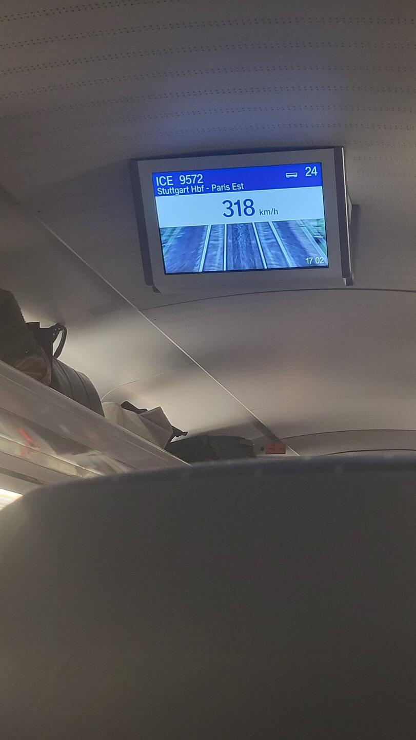 Mit dem Auto nach Stuttgart und dannach mit dem Zug und Tempo 318 km/h nach Paris.