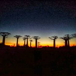 Und wir schaffen es tatsächlich noch pünktlich zum Sonnenuntergang bei den Boabab's anzukommen. Und es hat sich gelohnt. Es war traumhaft schön anzusehen, wie die Sonne zwischen den Bäumen untergeht und wie die Bäume im Abendrot aussehen. Ein rot leuchtender Himmel im Hintergrund, schwarz silhouhierte Bäume im Vordergrund. Doch noch ein schöner Abschluss, des sonst nicht so tollen Tages. Bucht man schon eine geführte Tour und dann kann man trotzdem noch so viel Pech haben... schon traurig...