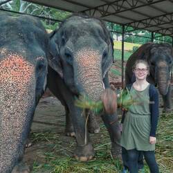 Beim Ausgang kommen wir an Elefanten vorbei, die wir sogar streicheln dürfen (natürlich nur gegen Tip)
