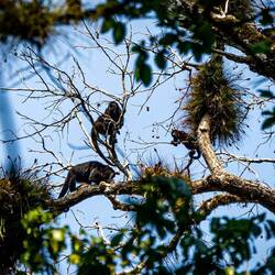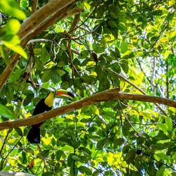 Tikal überzeugt nicht nur mit leblosen Steinen, sondern auch mit einer umso lebendigeren Tierwelt. Besonders Morgens steppt hier der Bär. Amazonenpapagei-Pärchen krächzen in den Bäumen, TukaneLæs mere