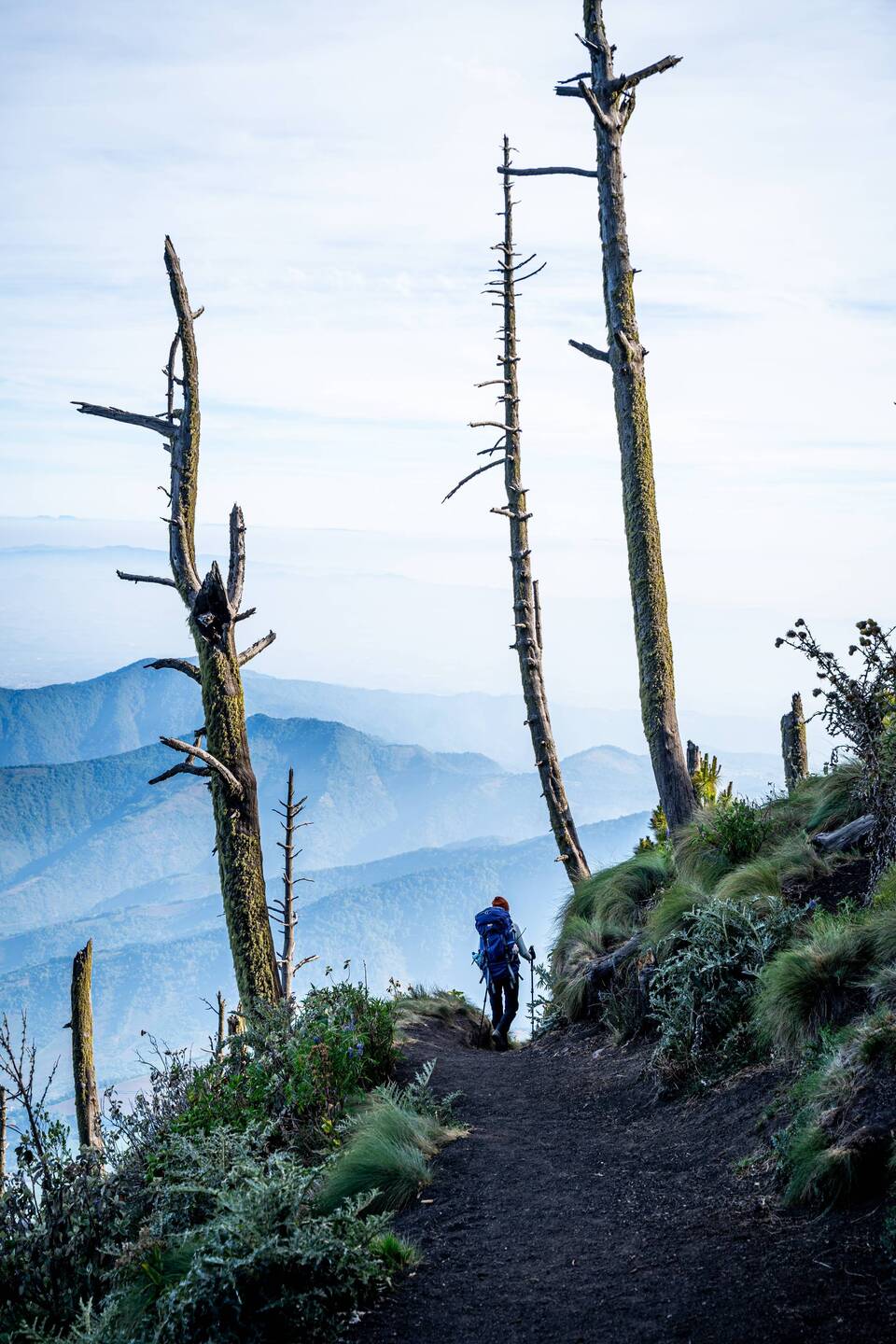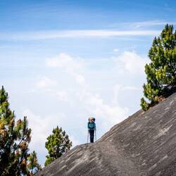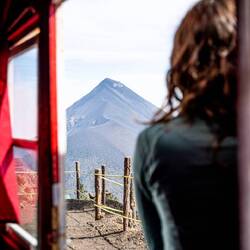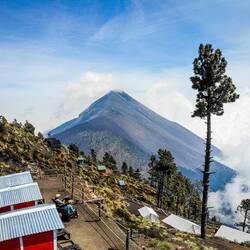 Wir waren aufs Schlimmste vorbereitet. Der Aufstieg auf den knapp 4000m hohen Acatenango, von dem aus man den i.d.R. aktiven (dazu später mehr) Volcan El Fuego beobachten kann, sei zerstörend, wurden wir vorgewarnt. Mit dieser Einstellung gingen wir an den Start und waren dann doch überrascht wie vergleichsweise leicht uns der Aufstieg erfreulicherweise gelang. Es war natürlich kein Spaziergang und der unaufhörliche Anstieg ging ziemlich in die Oberschenkel, aber dennoch haben wir auf dieser Reise schon schlimmere Wanderungen durchlebt. Bewunderns- und auch bemitleidenswert waren derweil aber eher die zahlreichen Träger / Sherpas, die uns während unseres Aufstiegs begegnet sind und mit kaum „Ausrüstung“ kiloweise Material für Touristen schwer keuchend den Berg hoch schufen. Nach knapp 4h und 1200 Höhenmetern waren auch wir und unsere insgesamt 30kg Handgepäck im Basecamp. Dort haben wir uns ein Cottage gemietet, um unser Zelt nicht hoch schleppen zu müssen. Das war eine gute Entscheidung. Vom Cottage aus hatten wir eine umwerfende Sicht auf den Vulkan und das umliegende Wolkenmeer. Nur die Eruptionen fehlten. Weil El Fuego drei Tage zuvor aussergewöhnlich stark ausgebrochen war, befand er sich während unseres Besuchs noch in einer Schlafphase, sodass es zu keiner einzigen Eruption kam 🥲