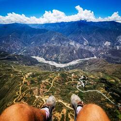 Für den nächsten Tag ist unser erster Gleitschirmflug angesagt. Dafür fahren wir an den Rand des Chicamocha Canyons und rennen nacheinander mit einem Piloten am Rücken die Böschung hinunter, bis wir von unserem Schirm in die Horizontale gezogen werden. Zusammen mit den Geiern, die wohl auf ein Unglück hoffen, schweben wir durch die Lüfte und Thermik bis uns schlecht wird. Nach der Landung ist uns immernoch schlecht. So sind wir uns dann gar nicht sicher ob es an uns liegt, als der Boden wackelt weil wir gerade ein Beben der Stärke 5.6 erleben. Offenbar sei der gegenüberliegende Berg (Mesa de los Santos), Ursprung der meisten Erdbeben in Kolumbien. Und auch in dieser Nacht wird Fabienne vom Schwindel in den Schlaf geschaukelt.Read more