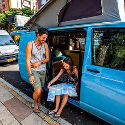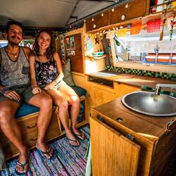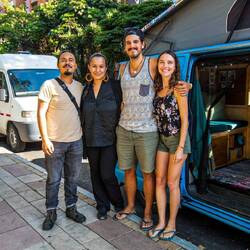 Als wir Medellín verlassen wollen, bitten uns unsere kolumbianischen Vanlifenachbaren eine weitere Nacht zu bleiben, weil ein Journalist einer lokalen Zeitung noch ein Interview mit uns führenLeia mais