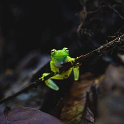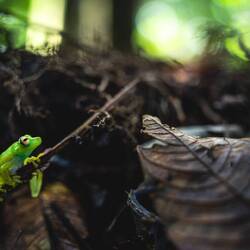 Später laufen wir noch etwas tiefer in den Wald hinein und Yolima erklärt uns die Tier- und Pflanzenwelt. Wir stossen dabei auf in dieser Region endemische Schwarzhand-Springaffen,もっと詳しく