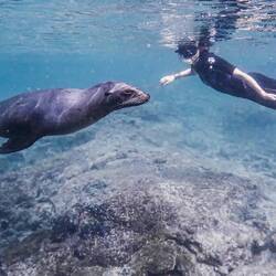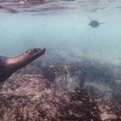Beim Schnorcheln auf Isabela stossen wir auf allerlei Meeresbewohner. An einem Strand sehen wir vom Ufer aus Pinguine und kämpfen uns mit unseren Taucherbrillen durch die Brandung hinaus zu ihnen.Read more