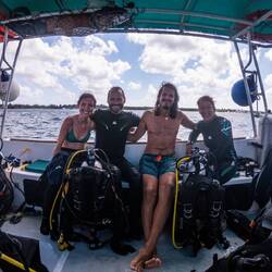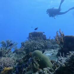 (...) Cozumel gefällt uns sofort viel besser. Den ersten Tag verbringen wir schnorchelnd am Strand und buchen für den nächsten Tag einen Tauchausflug. Der Tauchausflug führt uns in den Südwesten der Insel. Martina und Steve haben sich ebenfalls angeschlossen. Auf unseren beiden Tauchgängen treiben wir mit einer zügigen Strömung einer Riffwand entlang und bestaunen dabei wunderschöne und v.a. gesunde Korallen und Schwämme in allen Farben und Formen. Unterwegs tauchen wir durch ein paar Höhlen und sehen ein paar Adlerrochen vorbeiziehen. Fabienne ist nun auch wieder fit und hat mit dem Druckausgleich keine Probleme. Nach zwei Nächten verlassen wir Cozumel wieder und hoffen, dass unser verbeulter Bus nach wie vor heil auf ist. Dem ist so.Leer más