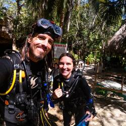 Endlich ist es soweit: wir können unseren ersten Tauchgang in einer Cenote und damit auch unseren ersten in Süsswasser durchführen.
