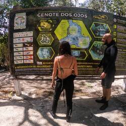 Weil sich für den Tag sonst niemand mehr gemeldet hat haben wir auch unseren persönlichen Höhlentaucher als Guide. Dominic ist Brite, lebt seit acht Jahren in Mexiko und weiss alles über Cenoten. Zumindest im Vergleich zu uns. Auf dem Weg zum ersten Tauchplatz erklärt er uns, auf chemische Reaktionen heruntergebrochen, die Entstehungsgeschichte dieser Wasserlöcher und welche Rolle sie in den Mythen der Maya spielten. Vor vielen Jahren während der letzten Eiszeit, als der Meeresspiegel noch einiges tiefer war als heute befanden sich die Höhlen über Wasser, sodass sich Tropfsteine formen und einstige Megafauna, wie Riesenfaultiere, tief in die Höhlensysteme eindringen konnte. In manchen Höhlen findet man heute noch Unterwasser sowohl Tropfsteine als auch Überreste der darin verendeten Urzeittiere.