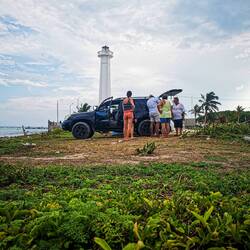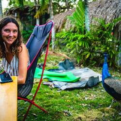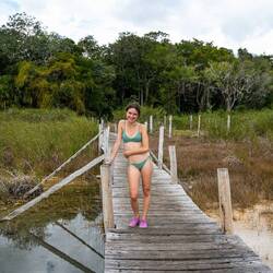 Einen der Besitzer fragen wir bei unserer Ankunft noch ob es in der Lagune Krokodile gäbe, worauf er antwortet, dass wir uns keine Sorge machen müssten, weil es hier keine Krokodile gäbe. Wir kühlen uns also im angenehmen Wasser ab und schwimmen ein paar Runden. Etwas später erzählen uns die Locals im Gespräch, dass es hier Kaimane hätte und man in der Nacht manchmal ihre Augen im Taschenlampenlicht sähe. Tatsächlich sieht Fabienne am nächsten Morgen einen am Strand. Grundsätzlich sind die Kaimane jedoch ungefährlich und greifen keine Menschen an (bis sie es einmal doch tun). Das nächste Mal werden wir jedenfalls pauschal nach im Wasser lebenden Reptilien fragen.