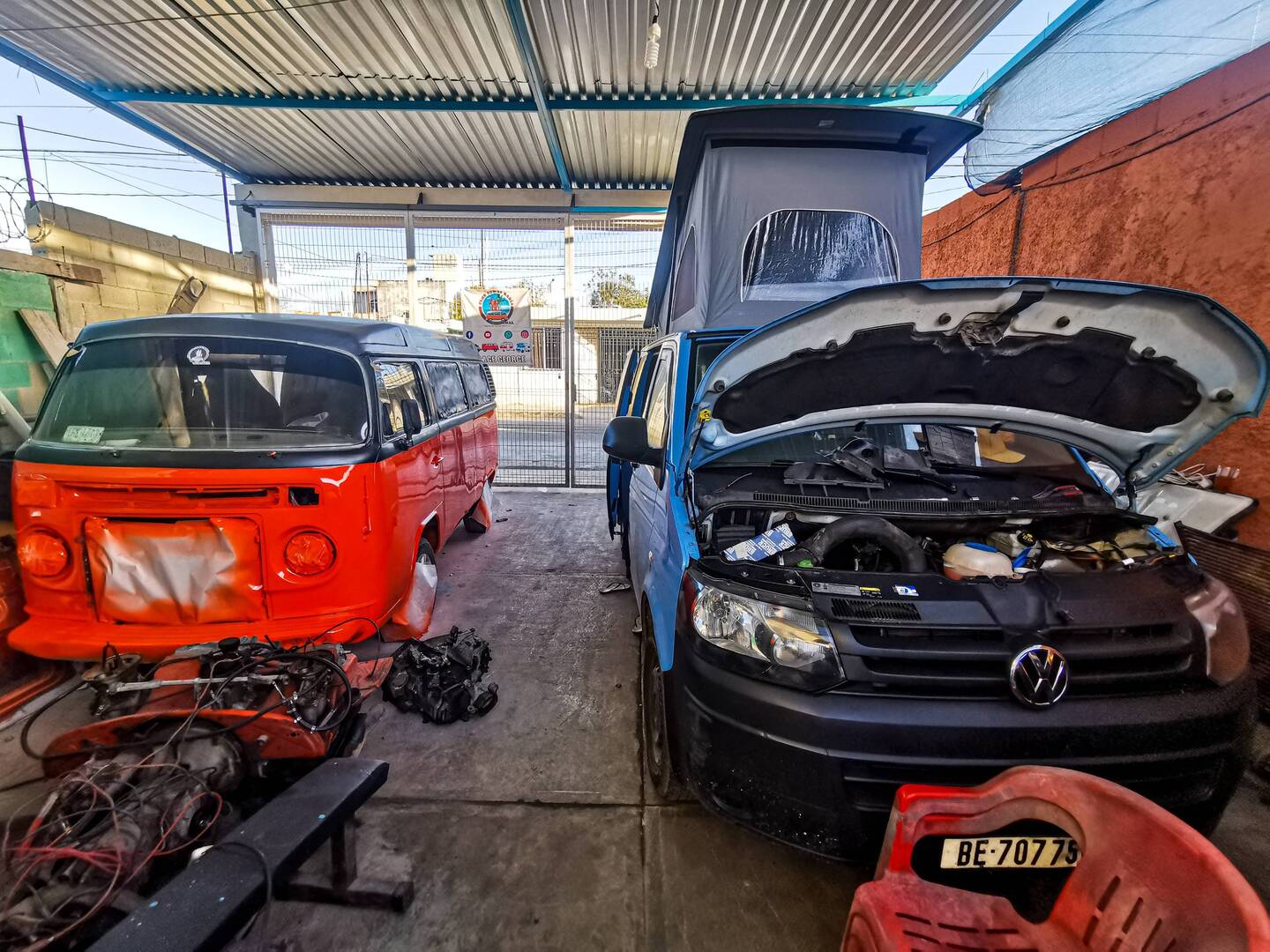 In Chetúmal finden wir einen Mechaniker, der sich mit VW Bussen auskennen soll. Zuerst müssen wir aber noch dort hin fahren. Das dauert etwa 2h. Und ach ja, die Kupplung unterstützt uns auf dem Weg dorthin nicht wirklich. Die Polizisten bei der Polizeikontrolle picken dann noch uns aus, um uns ein paar Fragen zu stellen. Wir sagen, dass wir Probleme mit der Kupplung haben, kommen unweigerlich mitten auf der Fahrbahn zum Stehen und blockieren so den ganzen Verkehr. So schnell kriegen wir den ersten Gang, dann auch nicht wieder rein, weshalb uns die Polizisten von der Strasse schieben müssen. Letztlich wollten sie nur kurz in den Bus rein schauen und lassen uns so dann wieder weiterziehen.