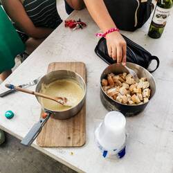 Eines Tages machen wir dann noch für alle ein Fondue, das wir zuvor per Zufall in einem Laden in Tulum entdeckt haben und eigentlich nur für 1-2 Personen gedacht wäre.