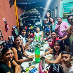 Zudem ist hier gerade Karneval. Auch da gehen wir mit der erweiterten Familie hin und führen uns den Umzug sowie die Tanzshow zu gemüt. Guggenmusiken fehlen hier, dafür ist die Musik mindestens ebenso laut und die Leute tanzen passionierter und weniger betrunken als zu Hause. Auch Larry gesellt sich am Meerufer zur Meute. Larry ist das hier ansässige Krokodil. Sein Auftauchen bildet für Geroge's Kinder (Jorgito und Carlitos) auch das Stichwort, dass sie uns vom Krokodil erzählen, welches sie einmal als Haustier hatten. Das Tier hat aber zwei Monate nichts gefressen und wurde daher von ihnen irgendwo wieder pflichtbewusst freigelassen.