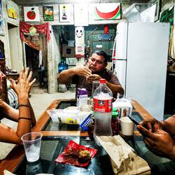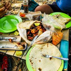 Auch bei Dany und Mary durften wir die mexikanische Küche vertieft kennenlernen. Alejandra, Mary's Mama, kochte mehrmals für uns. Sie beglückte unsere hungrigen Bäuchlein mit Hühnersuppe (inkl. Füssen), selbstgemachten Tortillas mit Rindfleisch, unserem ersten Ceviche (mit Meeresschnecke) und mit dem besten Fisch, den wir je gegessen haben (dazu Pommes). Wenn Ausflüge auf dem Plan standen, haben wir meist an einem Stand ein gegrilltes Hühnchen mit Reis und Tortillas gekauft und mitgenommen. An den nächtlichen Marktständen von Chetumal haben wir auch unsere ersten "Elotes" (Maiskolben am Stiel mit Mayo, Käse und scharfen Gewürzen) und "Tostilocos" (aufgeschnittener Sack Chips mit warmem Mais, Käse, und diversen Toppings) probiert. Zum Frühstück (täglich gegen 11.00 Uhr) gabs normalerweise meist schon was deftiges wie z. B Empanadas mit Käse- oder Fleischfüllung. Die mexikanische Küche bleibt ihrer fleischzentrierten Art treu. Mary und Dany sind derweil sehr offen für Neues und lassen uns auch ab und zu kochen, so dass wir doch noch zu etwas Gemüse kommen und ihnen auch die schweizer Küche ein bisschen näher bringen können. Beim italienischen Pesto ist für Dany dann aber Schluss: darunter leidet er zwei Tage. Hat aber vielleicht auch damit zu tun, dass er mit Chili nachgewürzt hat bis ihm Wasser aus allen Körperöffnungen tropfte.Leer más