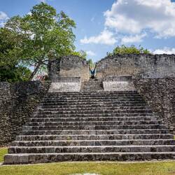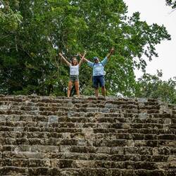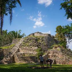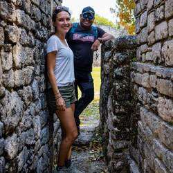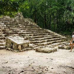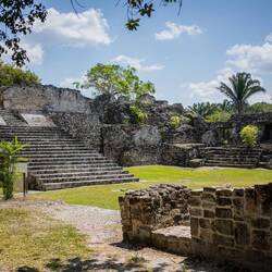 Gleich am zweiten Tag nimmt uns Dany mit auf eine Erkundungstour zu der nahegelegenen ziemlich unbekannten Maya Stätte Oxtankah.