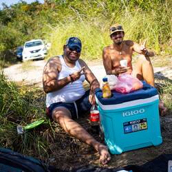 Nachdem wir uns bei den Ruinen vollgeschwitzt haben machen wir uns auf den Weg an einen Geheimspot an der Lagune von Bacalar. Dort hat sich bereits die halbe Stadt versammelt, weshalb wir nur noch in den hinteren Rängen Platz finden. Dafür lässt es sich hier gut im Schlamm stecken bleiben.