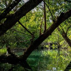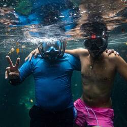 Wir verlassen das Gelände von El Pit und fahren auf einer Schotterpiste zum ca. 2km entfernten Tauchplatz "Dos Ojos". Die hier gelegene Cenote ist unterirdisch mit El Pit und vielen anderen Cenoten (offenbar 228 Stück) in der Umgebung verbunden und Teil des Sac Actum Systems. Letzteres bildet mit einer Länge von mehr als 350km das grösste bekannte Unterwasserhöhlensystem der Welt. Alleine diese Tatsache dehnt unseren Verstand ins unermesslicher, um ihn dann später auf dem Tauchgang vollends zu sprengen. Der Tauchgang beginnt wie meistens an der Wasseroberfläche. Danach steigen wir ab und fliegen mit unseren Taschenlampen bewaffnet in Richtung Dunkelheit. Um uns hüllt sich ein fast grenzenloses Höhlensystem. Wir schweben durch das wohl klarste Wasser in dem wir je geschwommen sind durch eine überwältigende Unterwasserkalksteinhöhlenwelt und erreichen dabei eine maximale Tiefe von nicht mehr als 8m. In der Hälfte des Tauchgangs tauchen wir in einer grossen Luftkammer auf und betrachten ein paar Fledermäuse. Danach geht's durch die dunklen Kanäle weiter, bis wir am Startpunkt angelangen. Die beiden Cenotentauchgänge haben uns den Atem verschlagen und werden wohl für immer ein riesen Highlight bleiben.Leer más